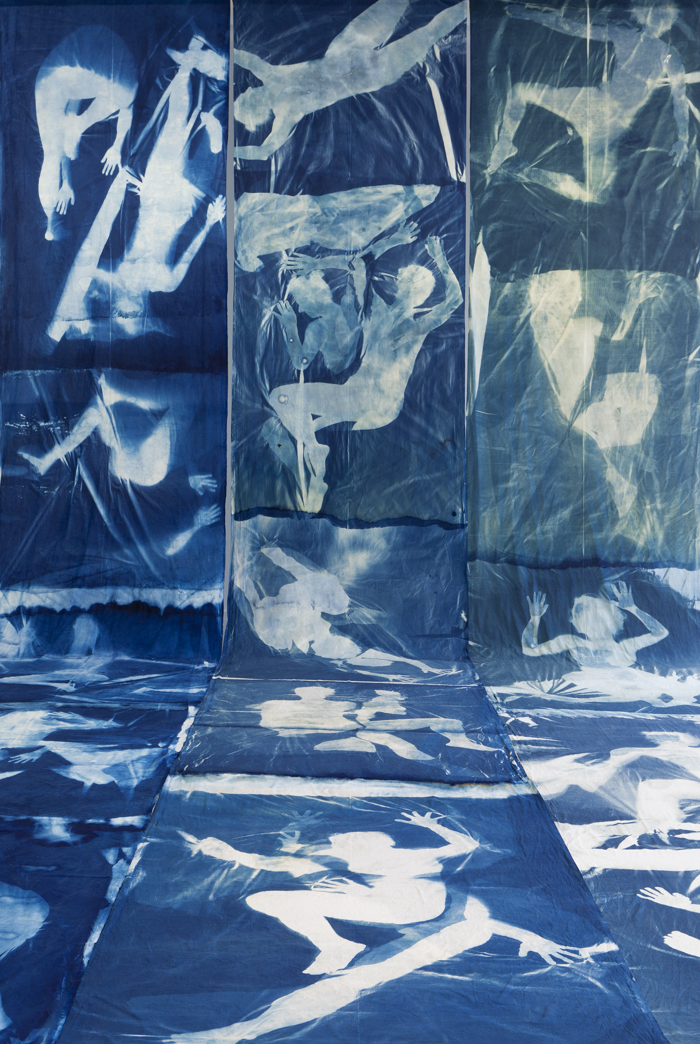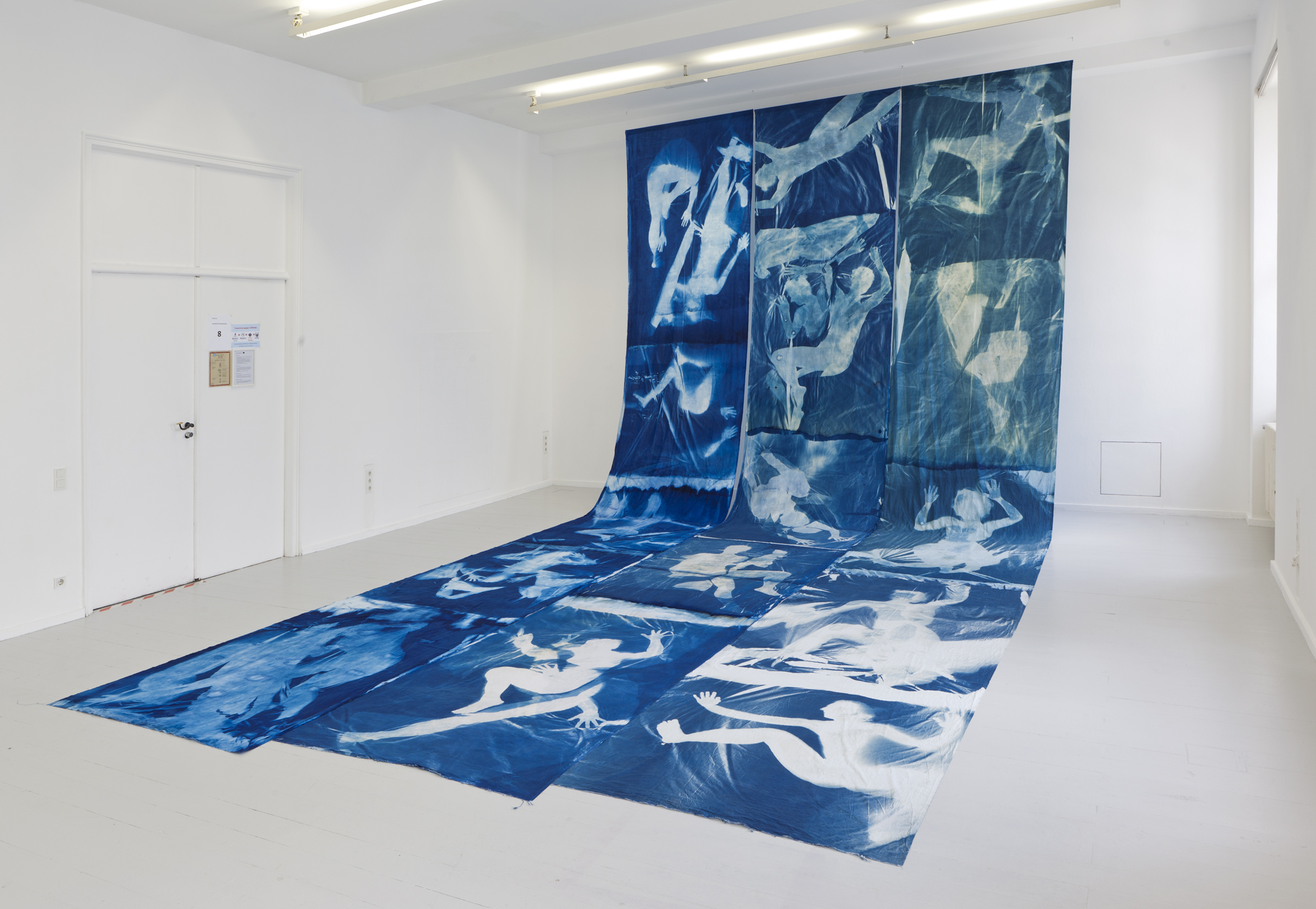 Cyanotypie auf Baumwollstoff,